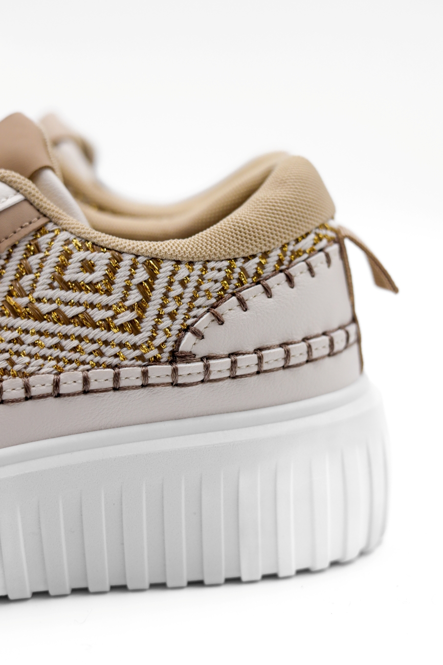Pozwól sobie na odrobinę luksusu z naszymi białymi sneakersami ze złotymi wzorami. Idealne połączenie komfortu i elegancji, które doda blasku każdej stylizacji.