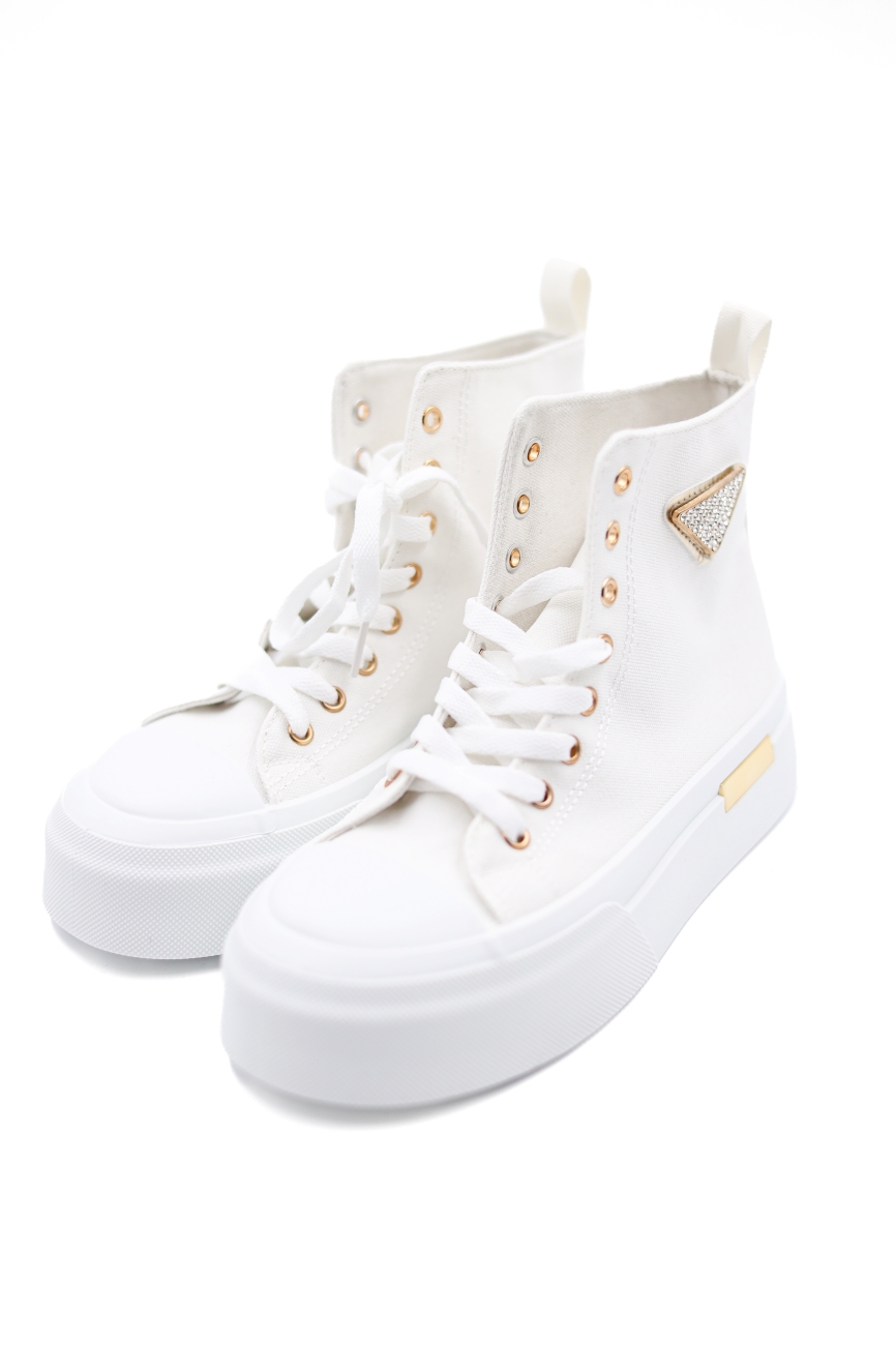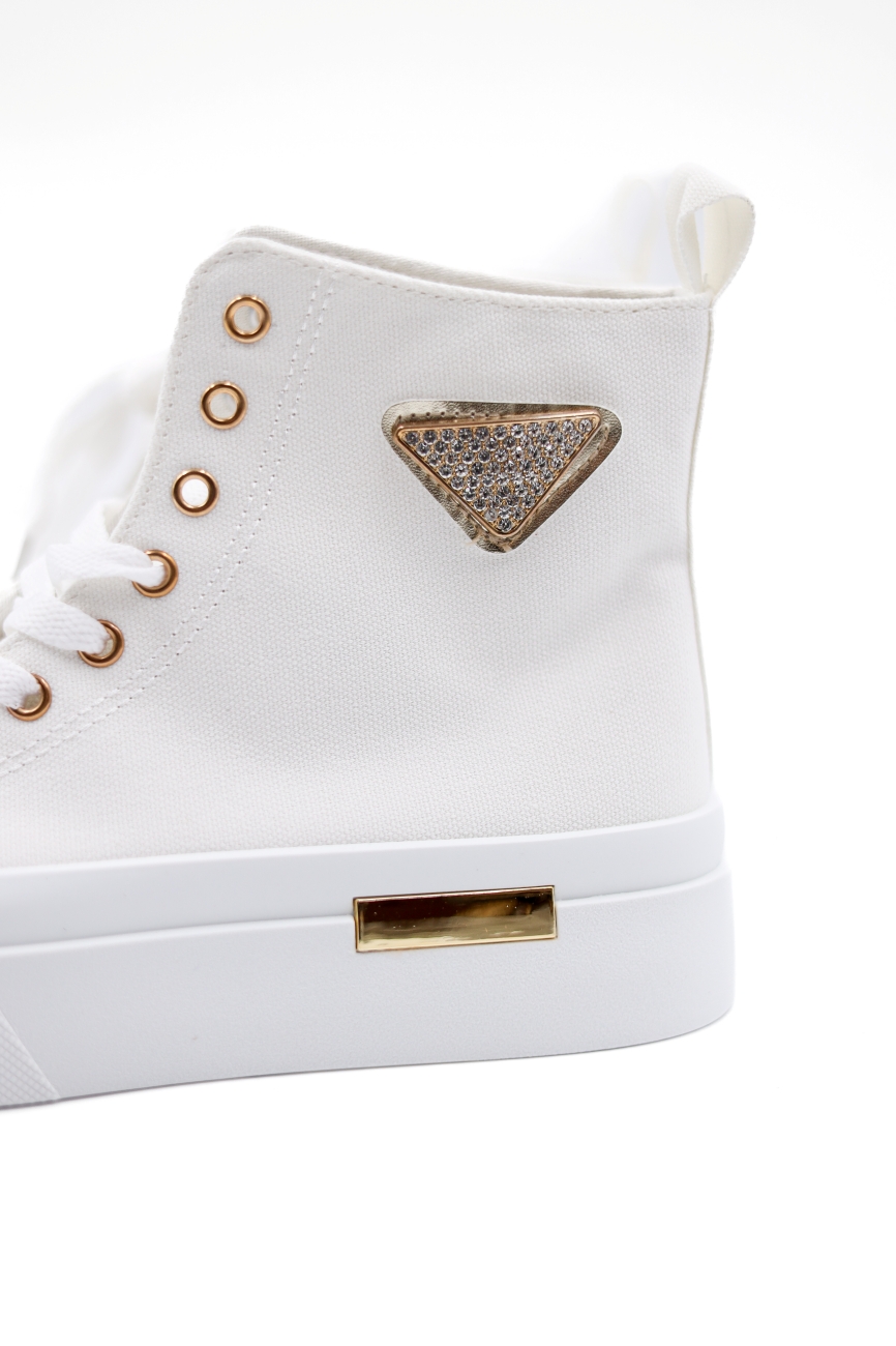 Odkryj elegancję i wygodę w jednym z naszymi wyjątkowymi trampkami za kostkę z geometrycznym wzorem trójkątów. Idealne na każdą okazję, dodadzą Twojej stylizacji nutkę wyrafinowania.