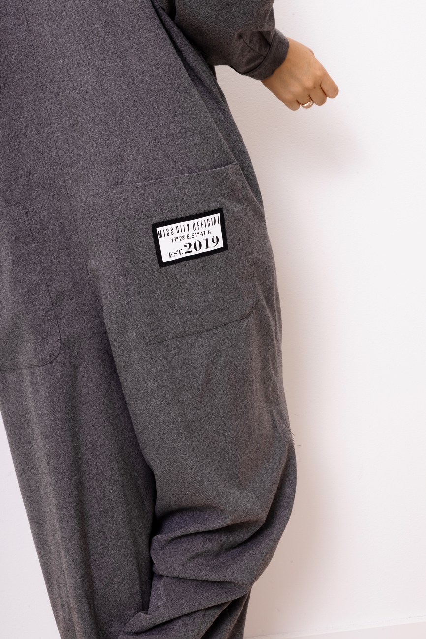 Długi kombinezon w eleganckim wydaniu to propozycja, która zaprezentuje się naprawdę efektownie w lookach na różne okazje. To model z długimi rękawami, a także szerokimi nogawkami w kant, posiada funkcjonalne kieszenie. Obniżony stan wprowadza nas w streetowy styl.