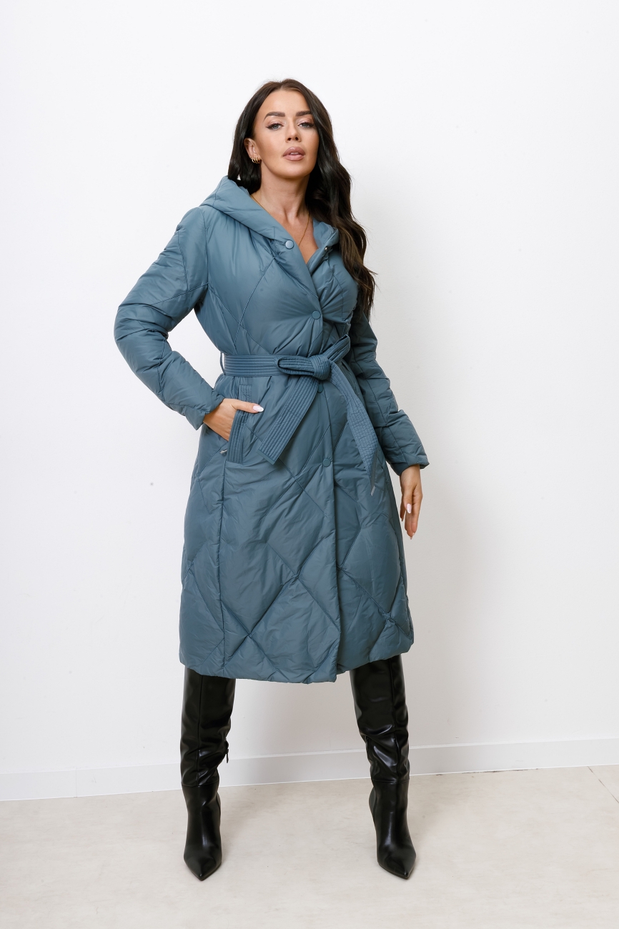 Płaszcz długi z paskiem pikowany X