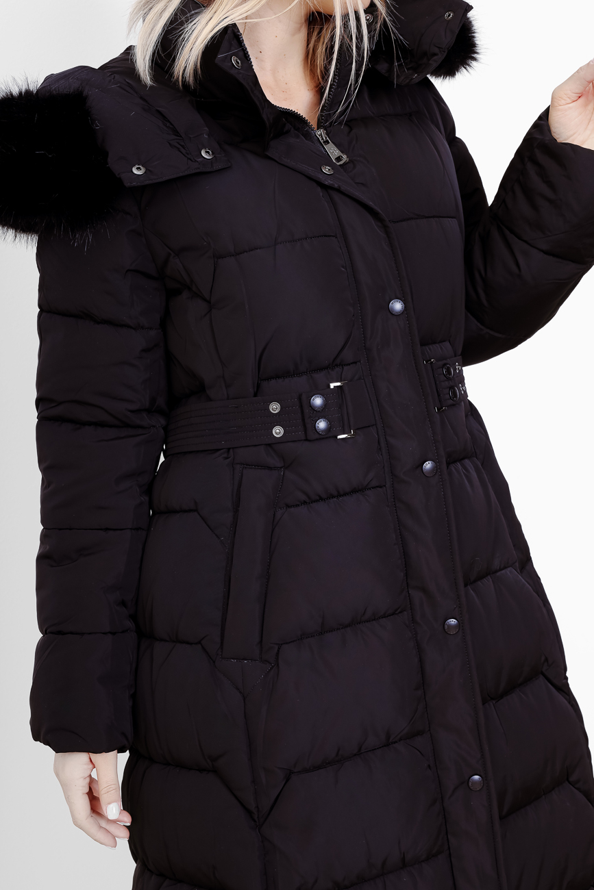Płaszcz pikowany kaptur futerko