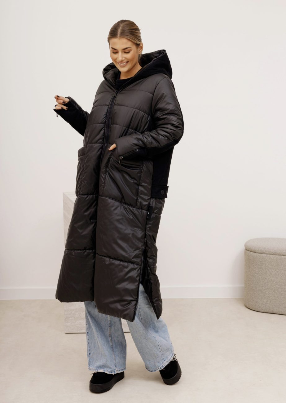 Płaszcz długi wiązany puchowy czarny