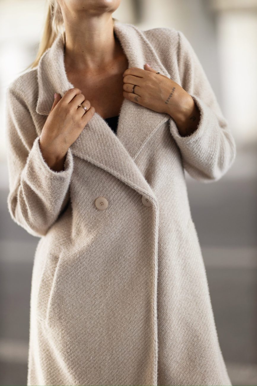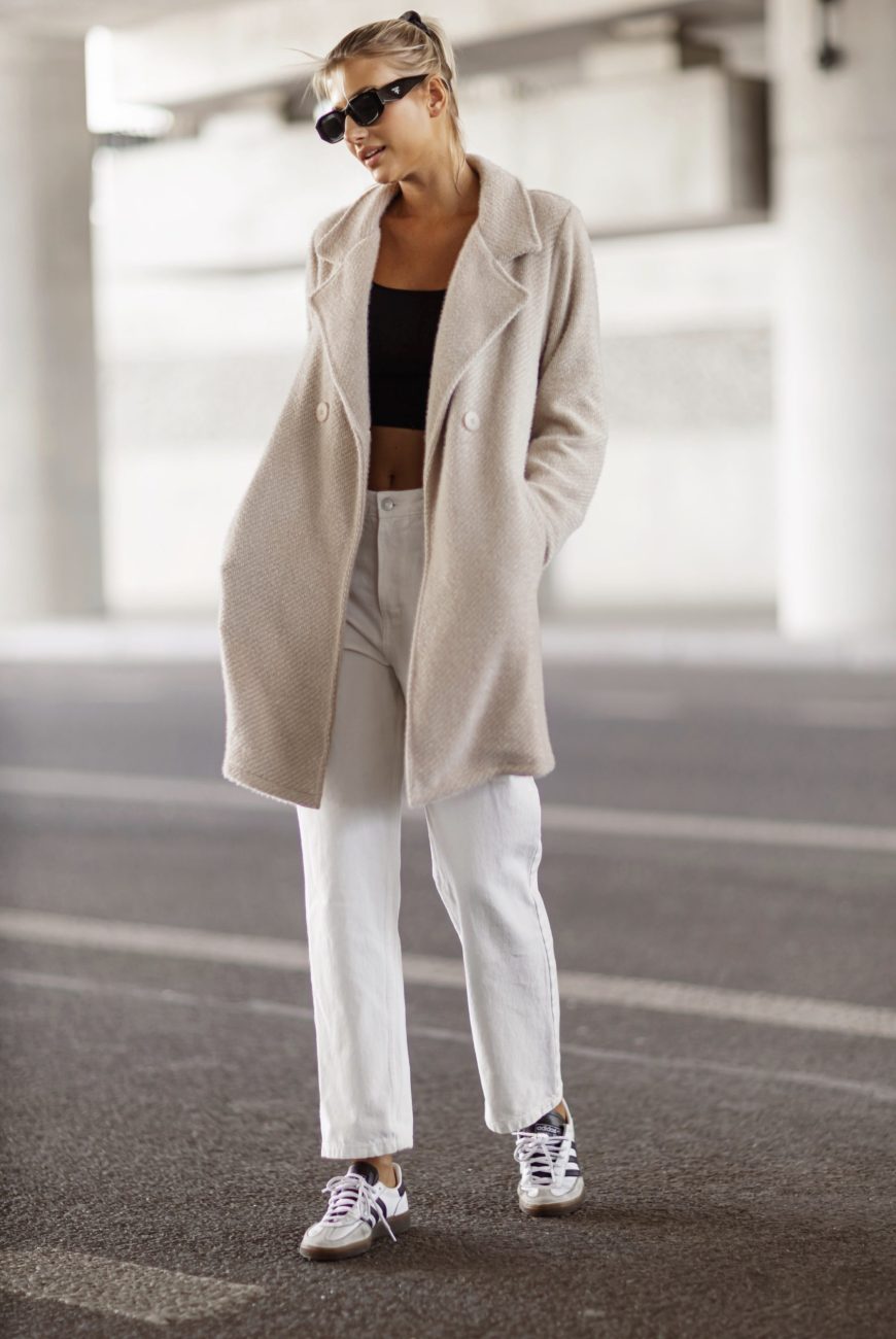 Płaszcz jodełka sweterkowy rękaw