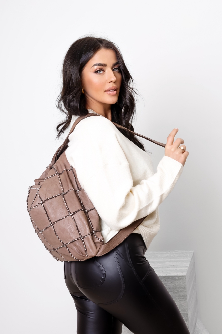 Torba zapisana na zamek posiada w środku podszewkę, 2 kieszonki otwarte i 1 na ekspres.