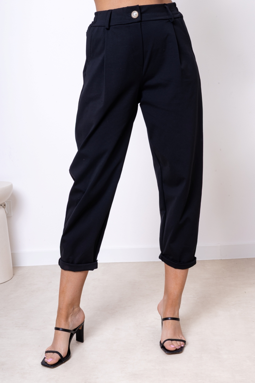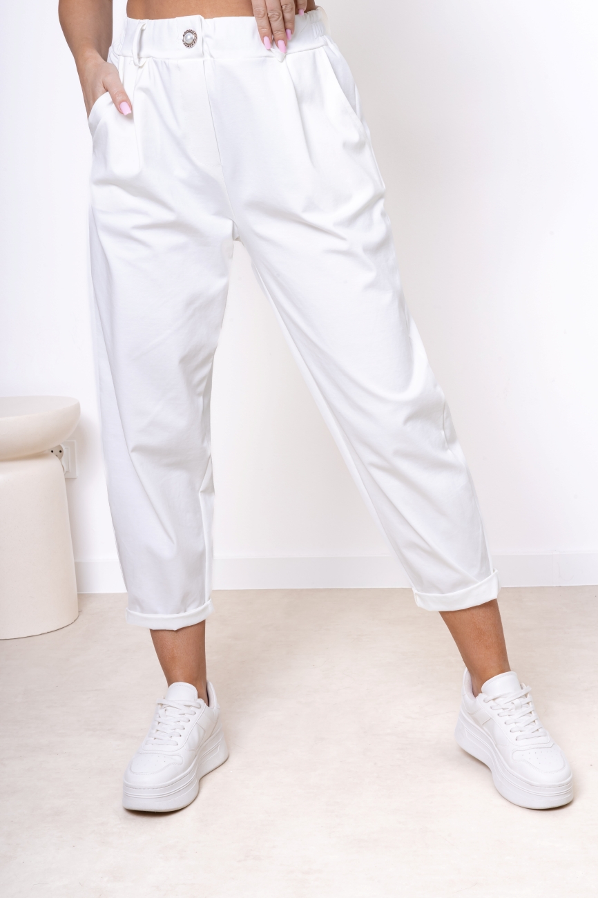 Odkryj elegancję i wygodę w spodniach "Guzik Perła". Idealne na każdą okazję, dodadzą Twojej stylizacji szyku i subtelnego blasku.