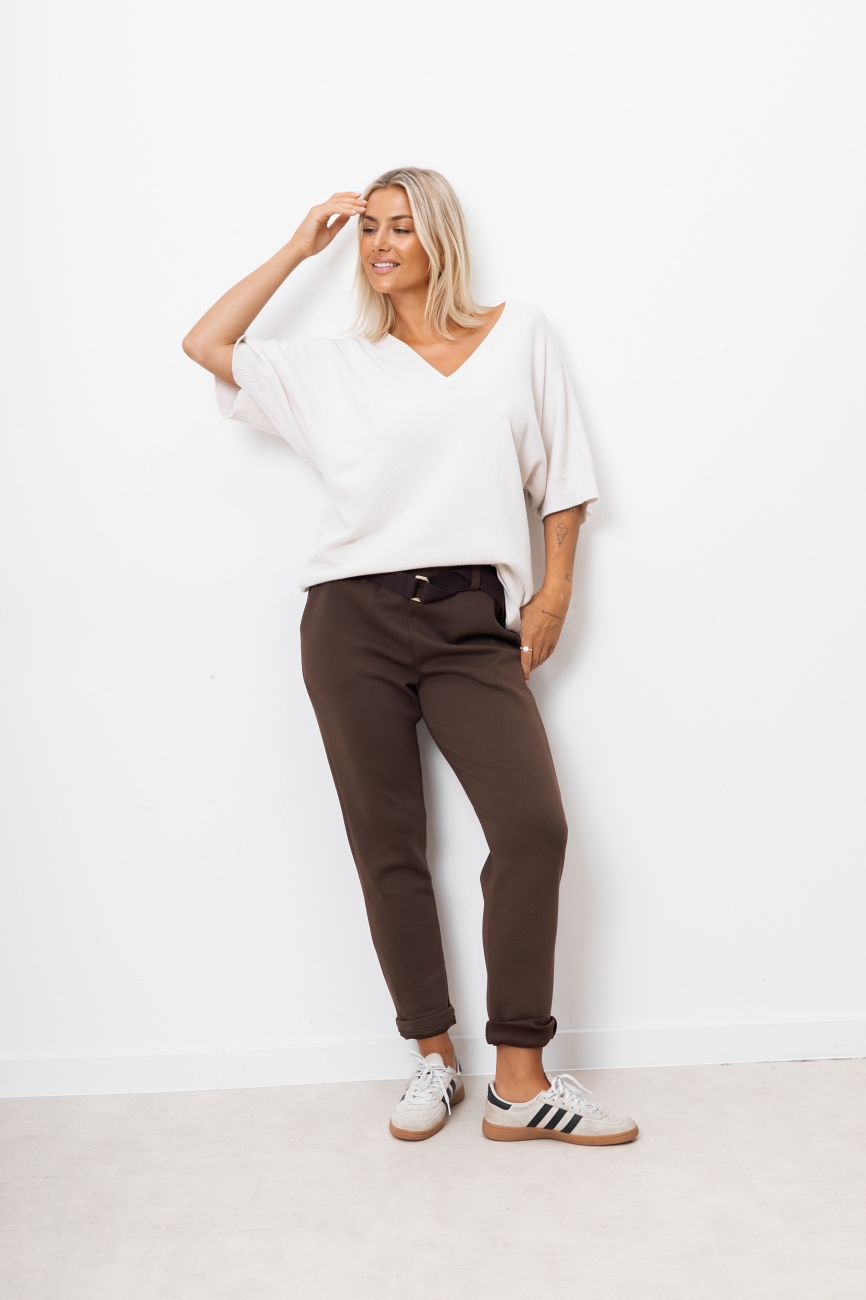 Sweter dekolt V ściągacz